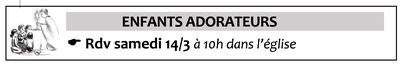 Samedi 14 Mars à 10h00 dans l'église chapelle de la sainte Vierge.