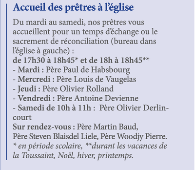 Participer à la quête Horaires des messes Denier de l'Eglise - Faire un don