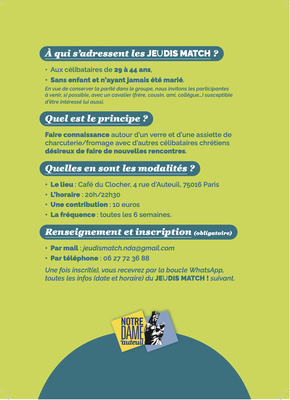 Pour les célibataires 29-44 ans : Jeudi. Match! — Notre-Dame d'Auteuil