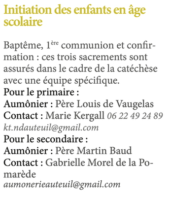 Initiation des enfants en âge scolaire — Notre-Dame d'Auteuil